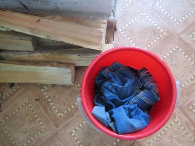 Сьогодні у мене за планом прання. Замочую джинси у відерці. Так виходить зручніше. З цим же відром потім я піду полоскати штани на колонку.