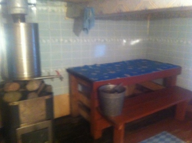 На печі завжди велика каструля з водою. Гаряча вода може знадобитися несподівано. Був випадок, коли довелося мити ноги мисливця перед тим, як надати йому допомогу в обробці рани.