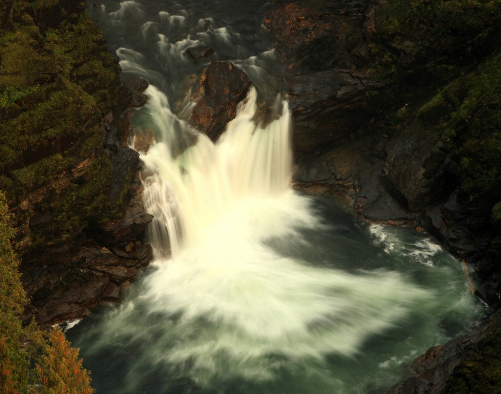 141-метровий водоспад Хельмкен (четвертий по висоті в Канаді) падає з краю скелі в широку кам'яну чашу, оточену соснами. Крижаний конус, що намерзає тут взимку, може досягати 50 метрів у висоту.