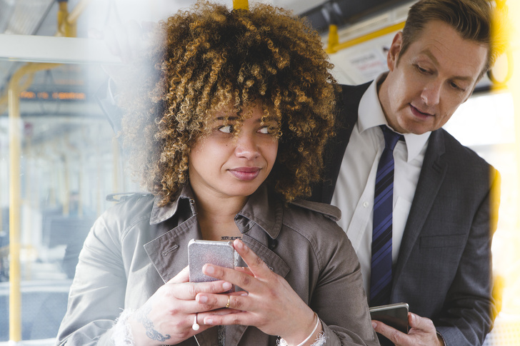 А враховуючи ту обставину, що приблизно 80 % пасажирів метро використовують смартфони або планшети, потрібно постаратися знайти таку точку, щоб погляд не потрапив на чий-небудь екран. Якщо ви хочете захиститися від цікавих очей, купіть спеціальний захисний екран, через який під кутом нічого не видно. Також є спеціальні програми, які затінюють частини екрана, яку ви хотіли б приховати.