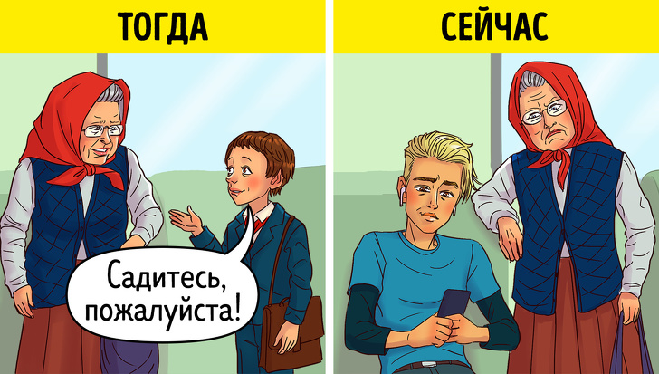 Більшість представників покоління Y вважає, що хороші манери в їх звичайному розумінні, всі ці «вибачте-спасибі-ласка» застаріли. На думку значної частини миллениалов, можна ставити лікті на стіл і не говорити «Будь здоровий» тим, хто чхає. А ось притримувати двері перед кимось або поступатися місцем у громадському транспорті не тільки не збігатися, але і може бути ознакою эйджизма або сексизму — дискримінації за віком і статтю, коли своїми діями ви можете образити іншу людину.