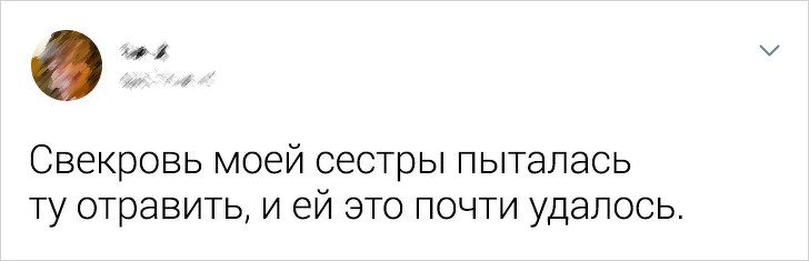 Пару раз так вигрібалося м'ясо з холодцю, що стоїть на вогні, бульйон зливався в каналізацію і так далі. Поки із застосуванням ненормативної лексики не сказала: «Мамо, ви офігіли в чужому домі розпоряджатися?! Господиня тут одна, і це не ви!» Пообижалась і перестала. Я тепер золота невістка. © Тетяна Шумілова / adme