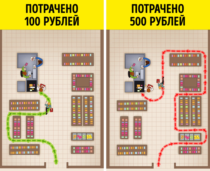 Як це працює? Більшість покупців при вході в магазин йдуть направо, тому що правші. Маркетологи знають про це і навмисне розміщують найдорожчі товари в правій частині торгової точки.