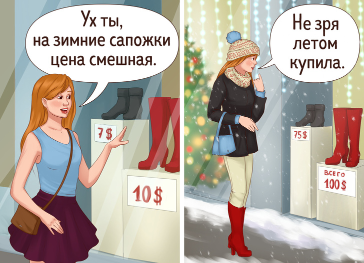 Як це працює? Побачивши товар за акційною ціною, людина прагне його придбати, щоб уникнути втрат, навіть якщо товар зовсім не потрібен. Це інстинкт: можливі втрати хвилюють нас більше, ніж придбання, і навіть одна думка про те, що, не купивши річ зараз, ви втратите можливість придбати її в майбутньому, викликає занепокоєння.