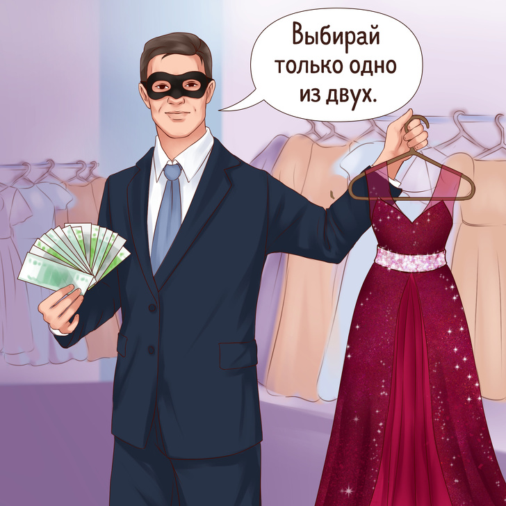 - Варіант № 1. Пройдіть «тест незнайомця». Захотілося купити нове плаття? Уявіть перед собою людину, яка в одній руці тримає ваше майбутнє придбання, а в іншій — його грошовий еквівалент. Що ви виберете? Якщо тягне в бік грошей, значить, не так вже й потрібна вам ця річ.