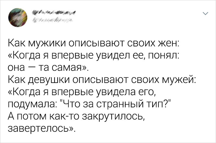 - Деякі люди вважають, що дружби між чоловіком і жінкою не буває. Мій найкращий друг — жінка, яку я знаю більше 30 років. Я довіряю їй більше, ніж рідній сестрі, і знаю, що наша дружба на все життя. І я втомився від думки як чоловіків, так і жінок, які припускають, що ми обов'язково повинні бути коханцями, якщо у нас такі хороші стосунки. © Woolybugger00 / reddit