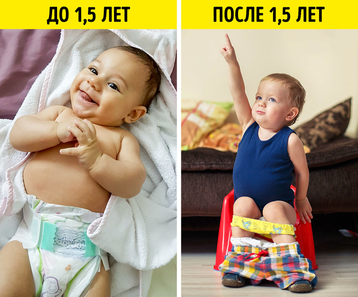 Не мучте горщиком дітей до року або навіть до півтора років: це марно. До цього віку у них не працюють сфінктери — клапанні пристрої в організмі, регулюють перехід вмісту з одного органу в інший. Тому дитина не відчуває наповнюваність прямої кишки і сечового міхура.