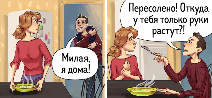 Головний показник — непередбачуваність у поведінці. Секунду тому все було спокійно, і раптом вибух: наїзд на підвищених тонах, раптова критика, зауваження. У результаті жінка живе в постійній напрузі: боїться сказати або зробити що-небудь неправильно.
