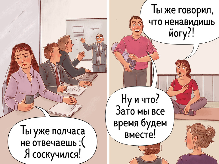 У перші тижні відносин це може розчулювати і радувати, але з кожним днем вас будуть все сильніше душити любов'ю. Такі союзи переходять у формат психологічного насильства, якого сам насильник може і не усвідомлювати — він же віддає усього себе!