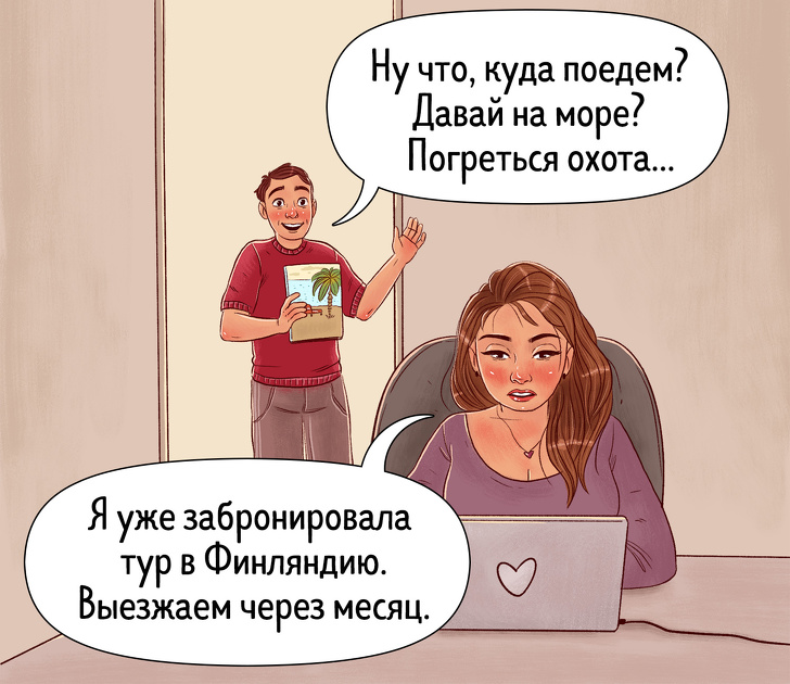 На жаль, з плином часу ситуація тільки ускладниться: партнер може самостійно обрати нову квартиру, місто для переїзду або ім'я загального дитині. Змусити такого партнера рахуватися з вашою думкою дуже складно. Та й чи потрібно?