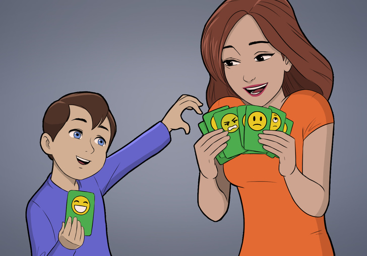 - Вправа. Щоб допомогти дитині краще зрозуміти себе, можна заздалегідь заготовити картки з символами, що зображують різні емоції. У скрутну хвилину запропонуйте їй уважно розглянути картки і вибрати ті, які найкраще описують його стан. Таку вправу можна робити і в звичайній ситуації, наприклад розповідати про найбільш яскравих емоціях, випробуваних за день.