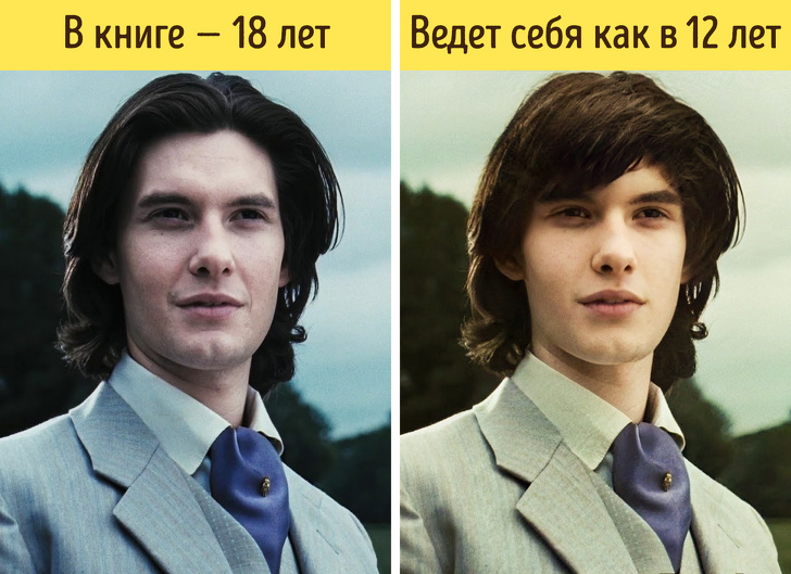 Цікаво, що порівняно з більшістю екранізацій у книзі відносини героя з Сибилой подані більш ніжно: там немає і натяку на спільно проведені ночі. Вагітності, як наслідок, теж немає.