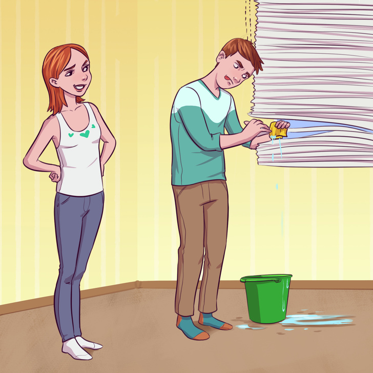 Десь на задвірках жіночої свідомості пробігає думка про те, що вона кілька разів пояснювала, як треба мити сковорідку. І ще: коли він кладе цукор собі в чай, чому банки не плутає. Якщо такі ситуації повторюються, виникає підозра, що чоловік «косячит» спеціально, щоб його просили про допомогу як можна рідше. Але якщо ваш герой дійсно старався і допустив промах ненавмисно, його не варто лаяти, інакше це остаточно відіб'є охоту в чому-небудь допомагати вам.