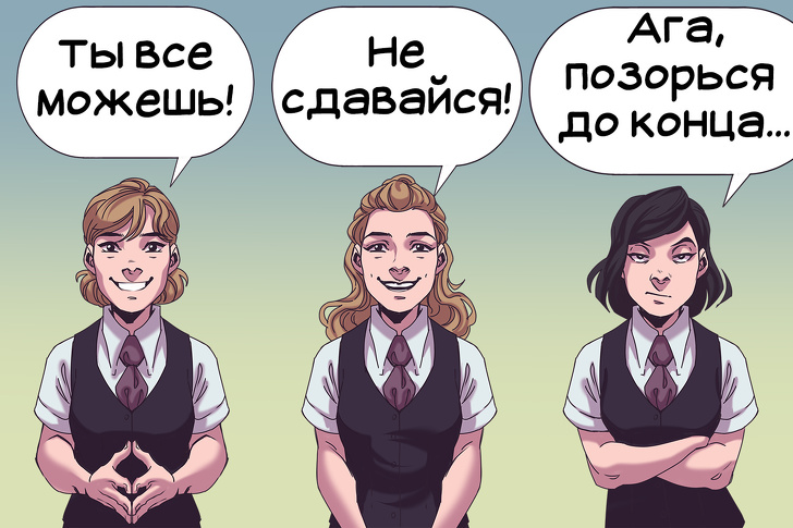 - Як позбутися? Побудьте егоїстом. Ми часто продовжуємо тягнути на собі безглузді справи тільки тому, що несемо за них відповідальність перед іншими людьми. Не хочемо підводити колег, розчаровувати близьких, боїмося не виправдати чужих очікувань. Навіть якщо ваш вибір здатися і не підтримають, то краще один раз потрапити в конфліктну ситуацію зараз, ніж збирати роздратування і незадоволеність, які ви виплеснеться на «кривдника» пізніше. А вже міфічне «суспільство» і зовсім не повинно хвилювати. Насправді всім все одно.