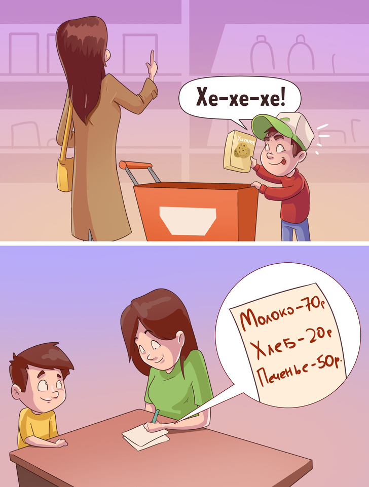Звичайно, дитина не допоможе з купівлею квартири або погашенням кредиту. Обговорюйте з ним невеликі витрати на зразок списку покупок в магазині або вибору відпочинку на вихідні. Обговорюйте ціну покупки, її необхідність і доступні альтернативи.