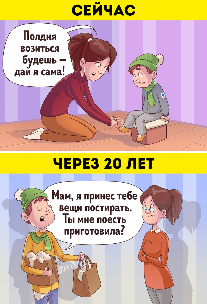 Іноді батьки недооцінюють здібності дітей до самостійних дій. Просто запам'ятайте правило: ніколи не робіть за дитину те, що він може зробити сам.