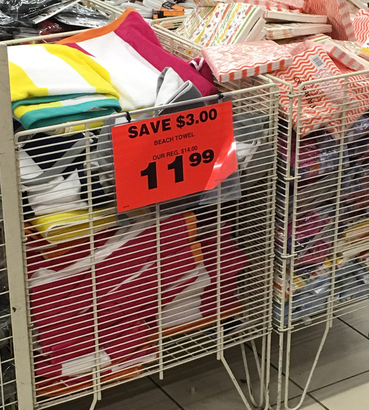 «Заощаджуйте $ 3. Пляжний рушник. Стара ціна $ 14. Нова — 11,99»