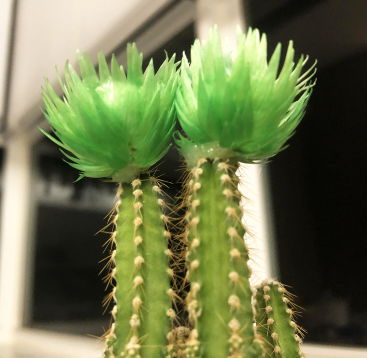 4. Ці пластикові квіти приклеїли до справжнім кактусам