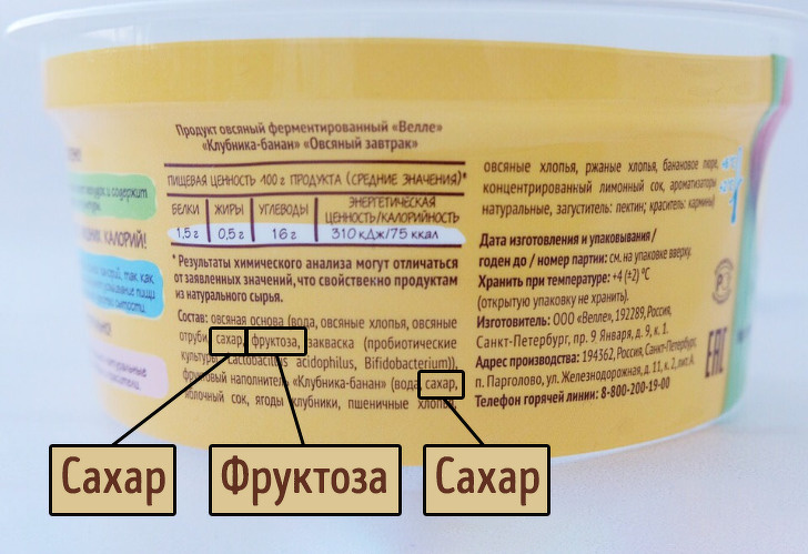 Якщо, читаючи етикетку продукту, ви побачите мед, глюкозу або фруктозу, то ви зрозумієте, що в складі є цукор. А ось малознайомі назви можуть збити з пантелику, тому корисно знати, на які ще інгредієнти варто звертати увагу.