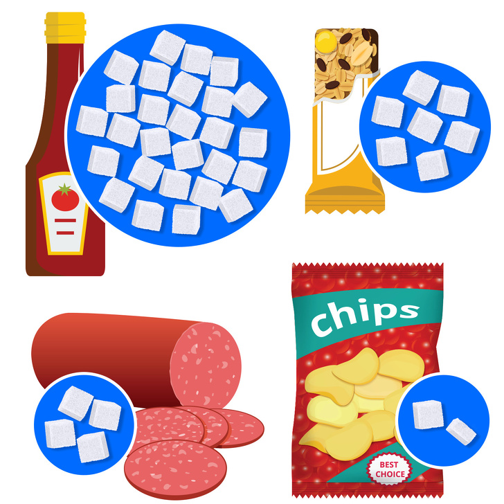 - Чіпси і солоні снеки (в маленькій пачці чіпсів приблизно 1,5 год. л. цукру);