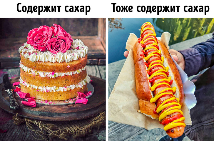 Часто продукти з високим вмістом цукру не викликають підозр, тому що вважаються здоровими або не є солодкими на смак. Приклади таких продуктів і напоїв: