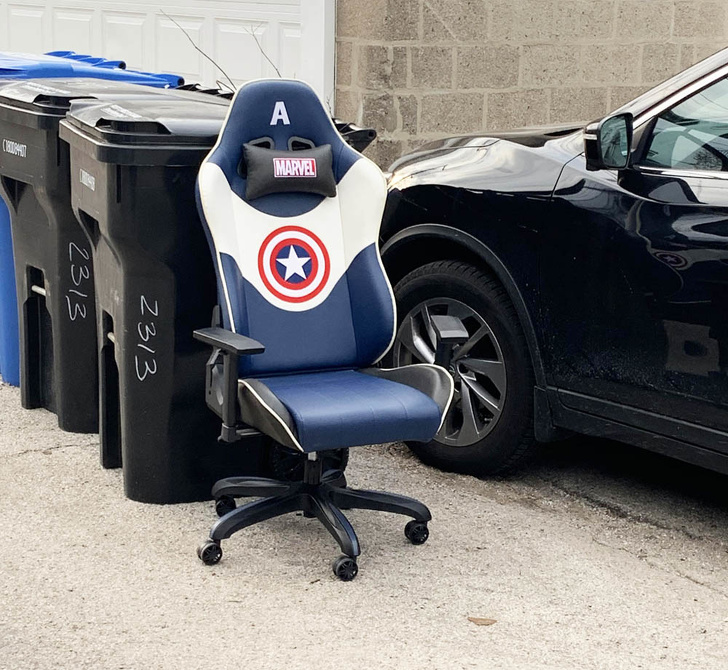 4. Хлопець наткнувся на залишений біля сміттєвих баків ігрове крісло. Воно було в ідеальному стані