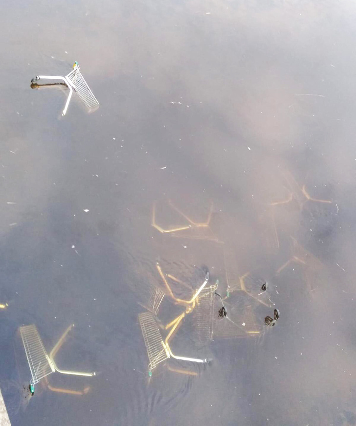 7. Чоловік викидає сміття в річку прямо в той момент, коли її очищає працівник комунальної служби