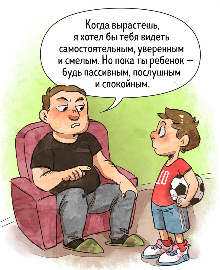 Іноді розчарований зітхання або незадоволене обличчя батька красномовніше всяких слів вказують, що дитина не виправдав покладених на нього сподівань. У складні періоди, коли дитина програв, не впорався або оступився — особливо важливо опинитися на його стороні, а не в ролі судді.