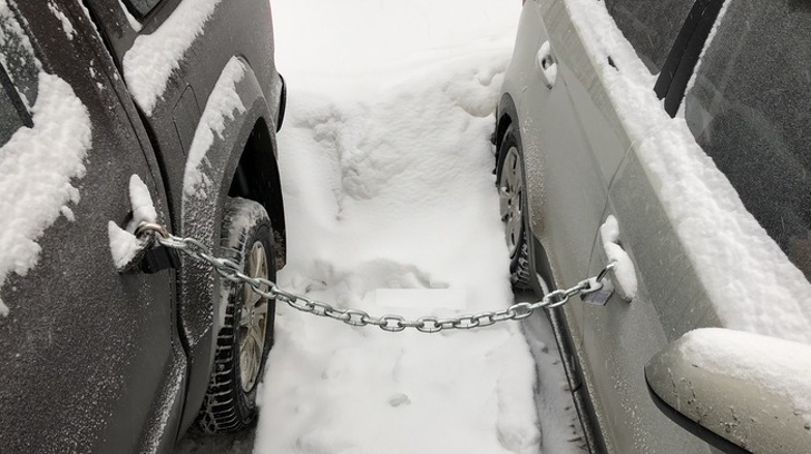 - Машина прикута ланцюгом і замками до сусіднього автомобіля.