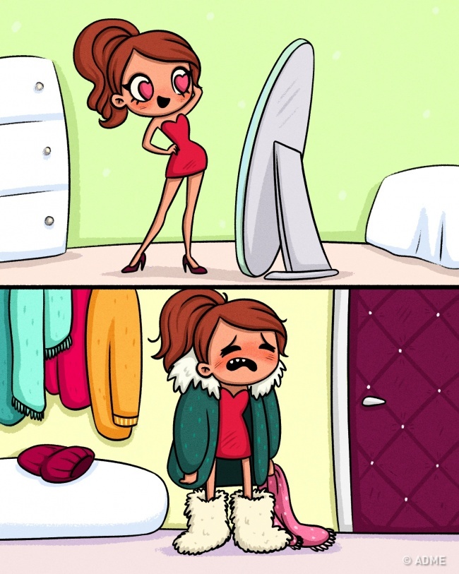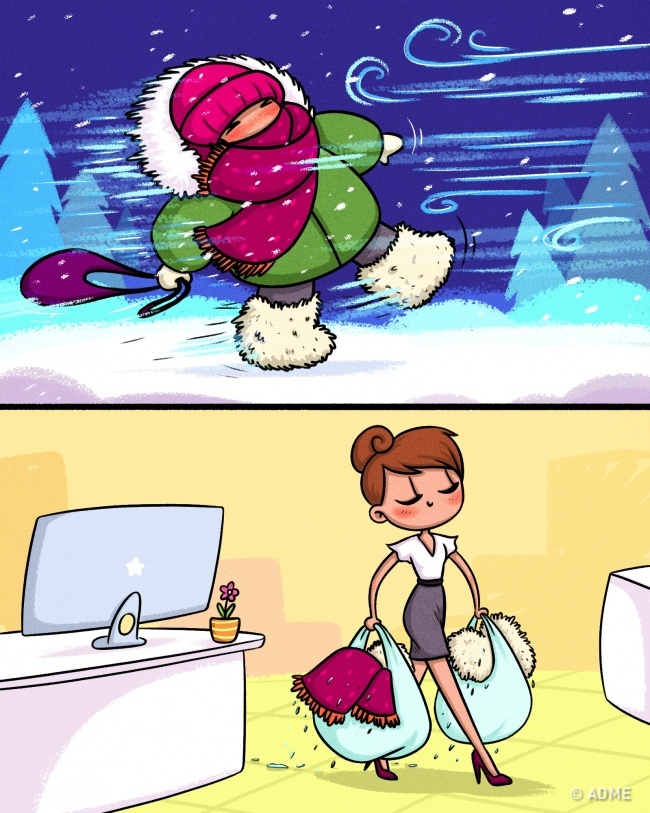 15 життєвих коміксів про те, як непросто живеться дівчатам взимку