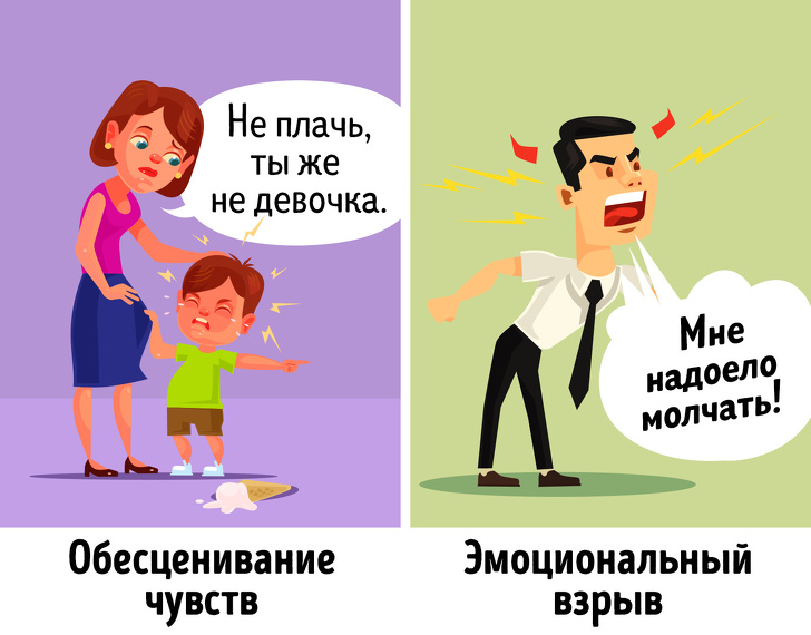 Трапляється, що діти засмучуються через те, що дорослим здається дурницями. Але замість розради вони чують оцінки («погано», «добре», «ти ж хлопчик / дівчинка») або накази («не плач», «не гнівайся», «нічого страшного»). Так знецінюються почуття.
