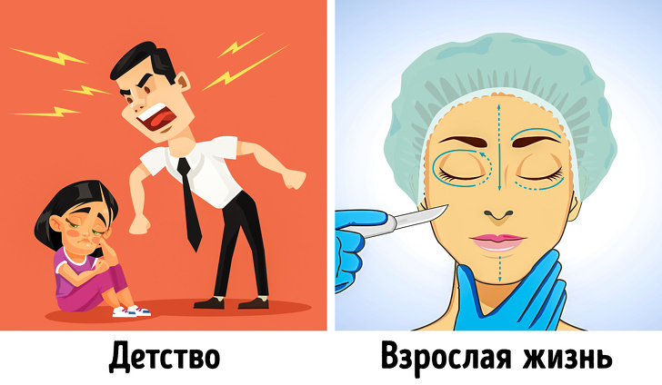 - Страждає самооцінка, з-за чого він не любить себе. Як наслідок, деякі в дорослому віці намагаються переробити себе за допомогою пластичних операцій.