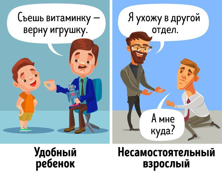 - У таких дітей навряд чи виникне бажання стати успішною людиною. Вони часто виявляються абсолютно нездатними до самостійного життя. До того ж відсутність розуміння самого себе і своїх бажань прирікає вже дорослої людини на проблеми зі здоров'ям і схильність до різних залежностей.