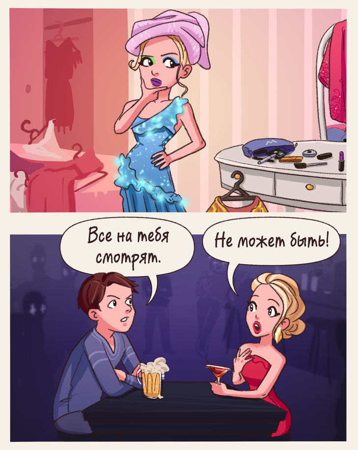 До речі, не варто занадто бурхливо реагувати на те, що ваш коханий не зводить очей з якої-небудь красуні в карколомному плаття. За статистикою, чоловіки витрачають на це рік життя. А жінки трохи менше часу витрачають на вибір нарядів. Так що у всьому є баланс.