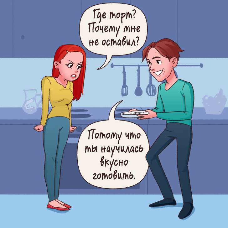 Проте варто задуматися, як особисто ви відреагували на порівняння з іншою жінкою. І замість фрази «А от Саша...» прямо сказати, що саме ви хотіли б змінити. Запропонуйте разом пошукати додаткове джерело доходів або поясніть, наскільки приємно вам було б отримувати подарунки на свята і просто без приводу.