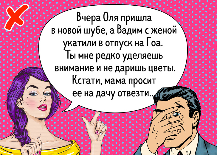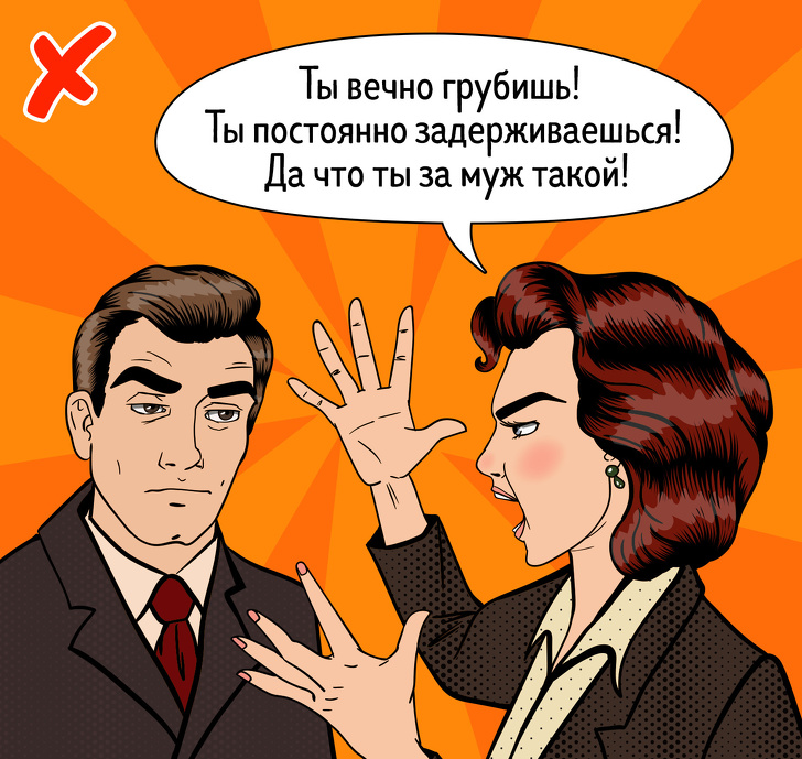 Оцінюйте не партнера, а його вчинки. Замість фрази «Ти грубий і холодний зі мною» краще сказати: «Я дзвонила тобі сьогодні, ти розмовляв відсторонено, я засмутилася і півдня була сама не своя».