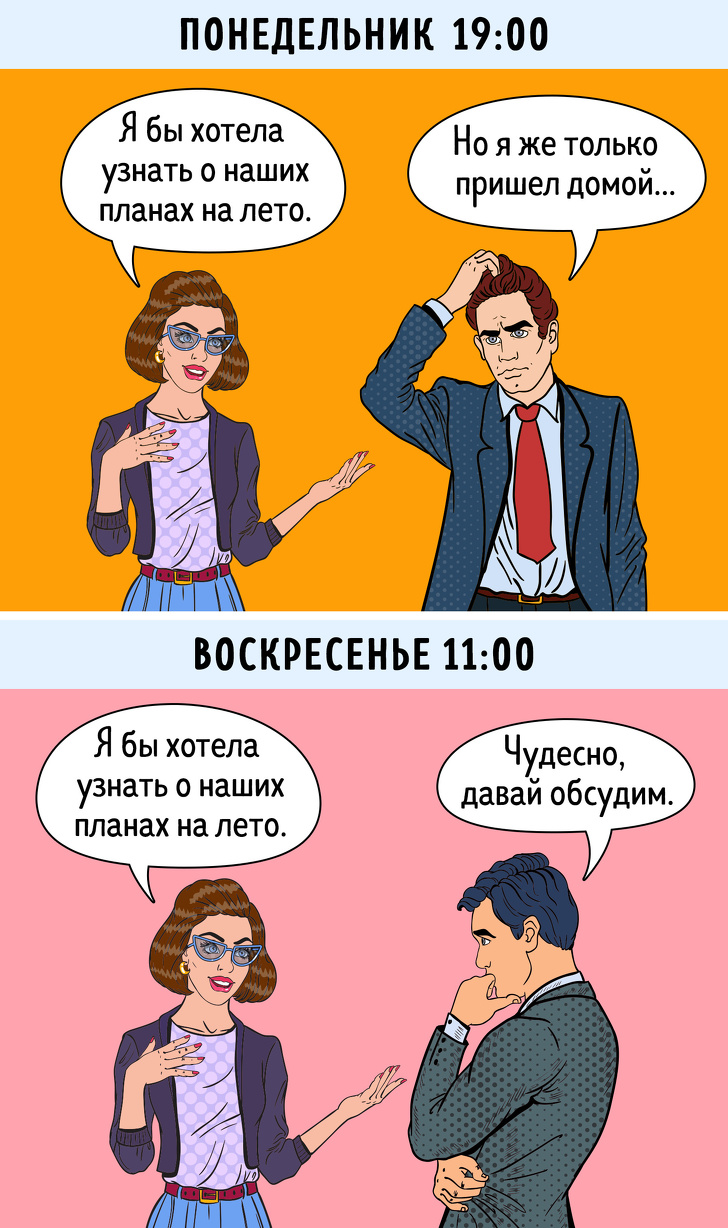 Люди люблять говорити не тоді, коли партнеру зручно, а тоді, коли їм хочеться. Такий підхід результату не дасть.