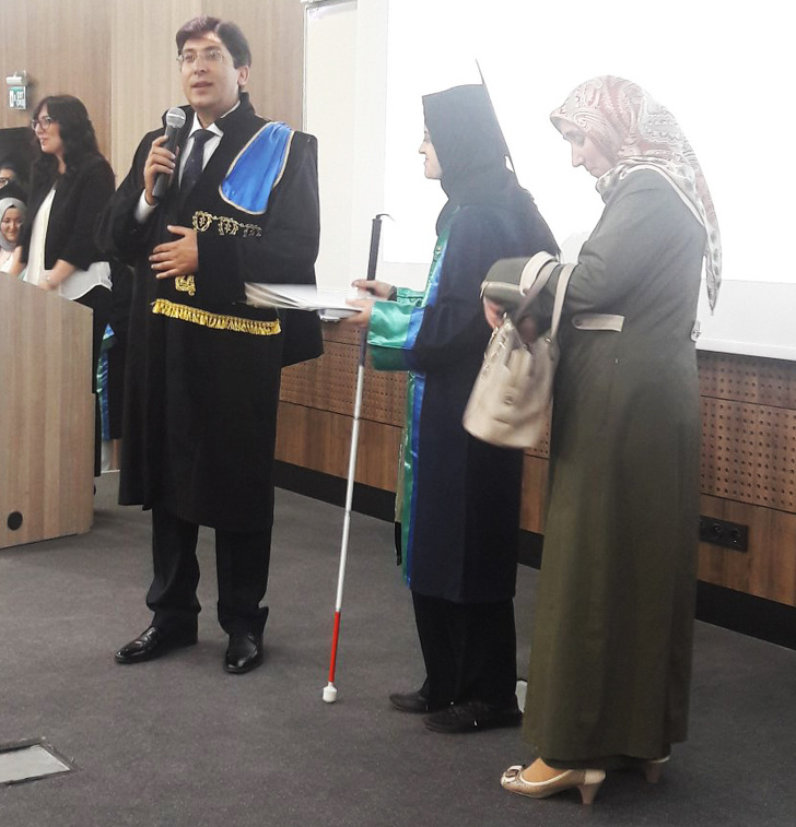 19. Слабозора дівчина закінчила юридичний факультет. Її мати (праворуч) теж отримала почесну ступінь за підготовку дочки до кожного іспиту: вона зачитувала їй всі юридичні книги протягом 4 років