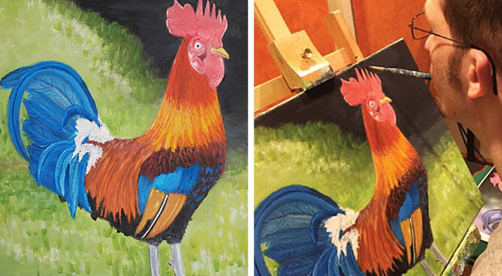 1. «У мене майже повністю паралізовані руки, тому я навчився малювати, затиснувши пензлик ротом. Це моя перша картина маслом»