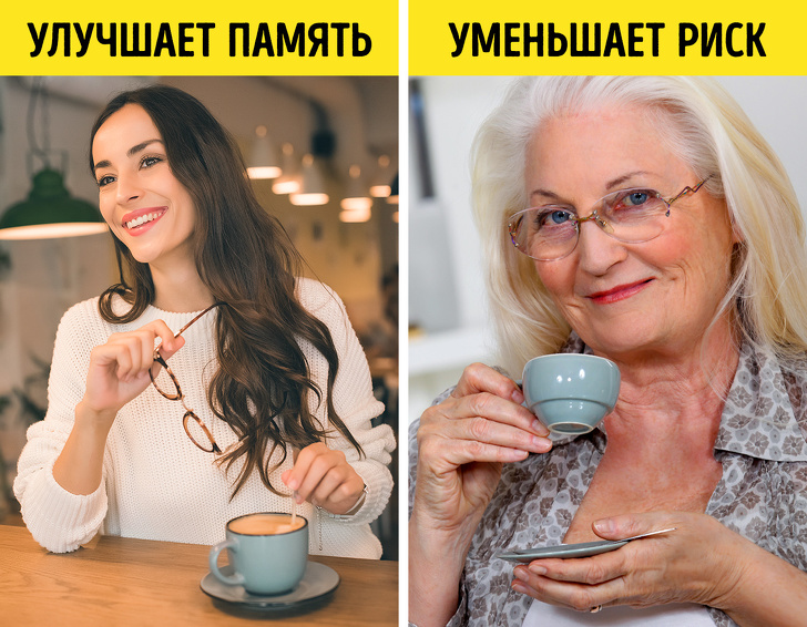 Вважається, що кофеїн впливає на короткочасну пам'ять, запобігає зниження пізнавальної здібності і, звичайно, підвищує працездатність. Тому не варто відмовлятися від ранкової чашки кави, якщо вона приносить вам задоволення.