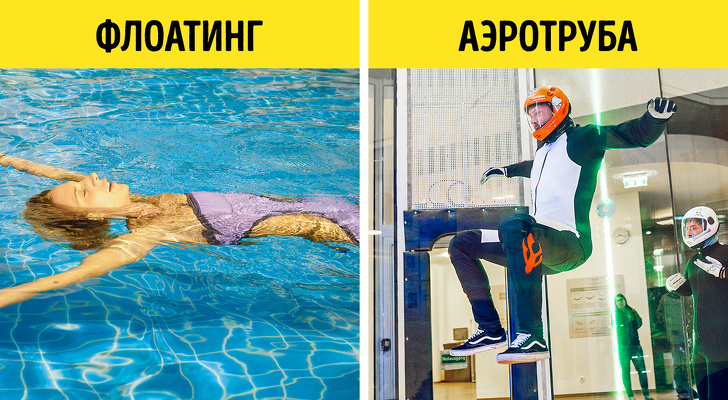 Такі набирають популярність розваги, як політ в аеротрубі і флоатінг (ванні з дуже солоною водою), дозволяють людині відчути стан невагомості, яке позитивно впливає на мозок. Поліпшуються працездатність, можливість приймати і засвоювати інформацію, абстрактне мислення.