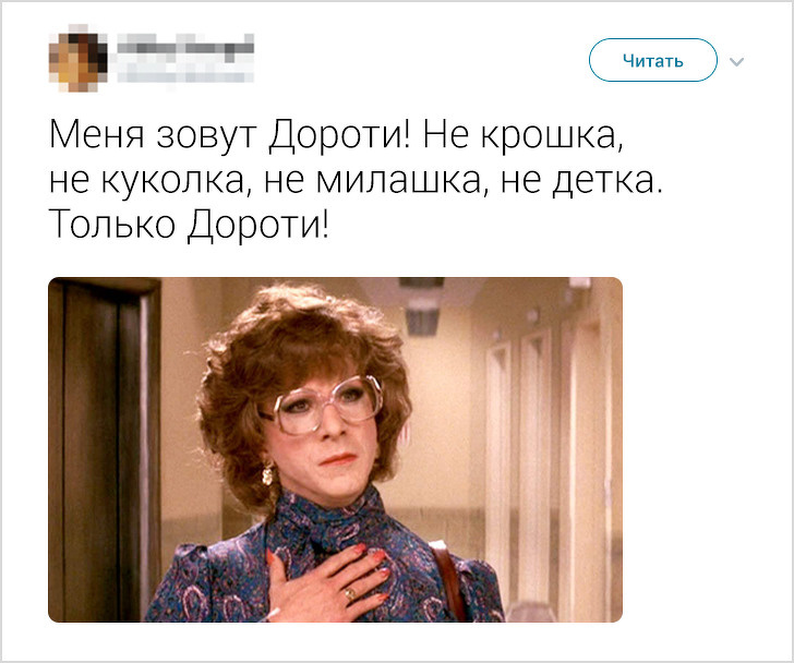 Якщо пари перестають використовувати ласкаві прізвиська, це нерідко говорить про недостатню близькості партнерів. Ну а використання подібних звернень в професійній сфері свідчить про порушення кордонів, бажання самоствердитися за рахунок працівника або навіть про домаганні. Саме тому героїня Дастіна Хоффмана у фільмі «Тутсі» різко поставила режисера-хама на місце.