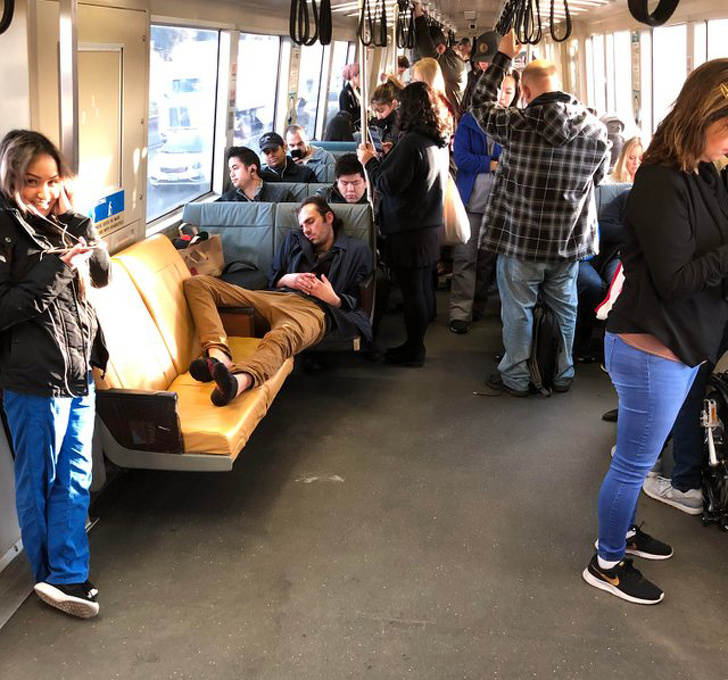 Коли люди в громадському транспорті займають кілька місць відразу, не думаючи про інших