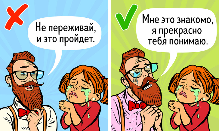 Зміцнення довіри та емоційної зв'язку вимагає духу єдності і товариства. Вислуховуючи чиїсь переживання, не поспішайте неодмінно переконати людину в тому, що скоро все пройде. Тим більше, будучи надзвичайно пригніченим, він навряд чи зможе прислухатися до цих слів.