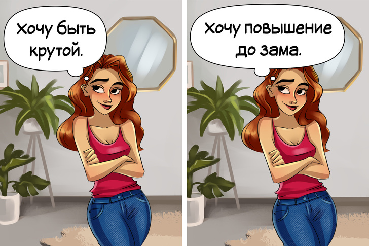І останнє: зробіть так, щоб ціль відповідала позитивний заряд. Хочете скинути зайву вагу? Тоді ваш варіант — «важити 50 кг», а не «позбутися від 20 кг».