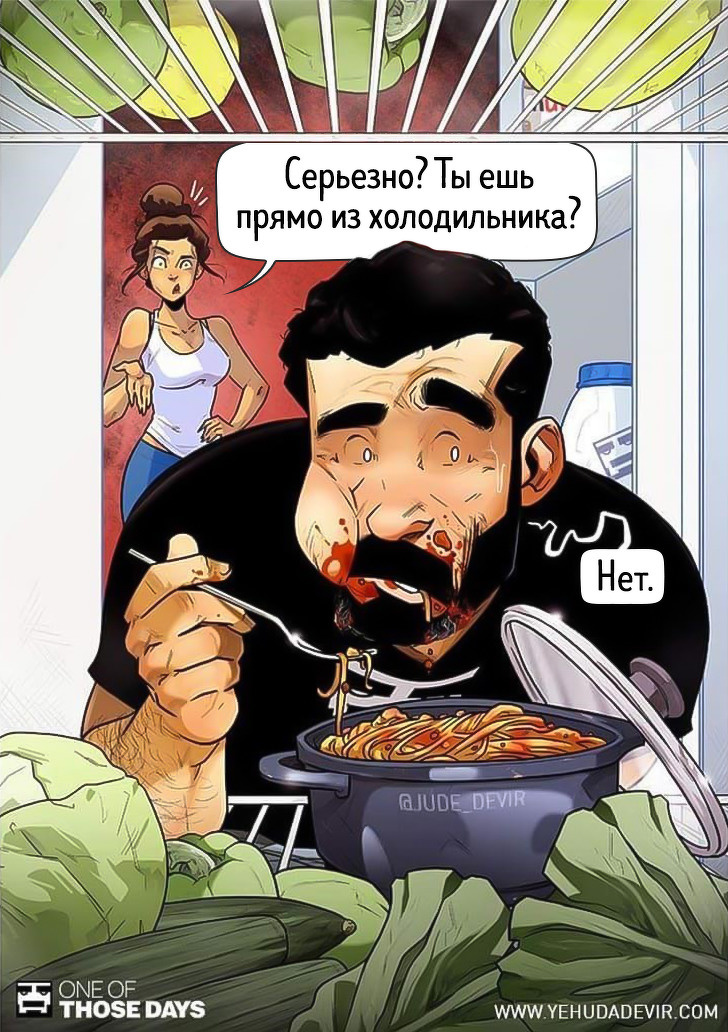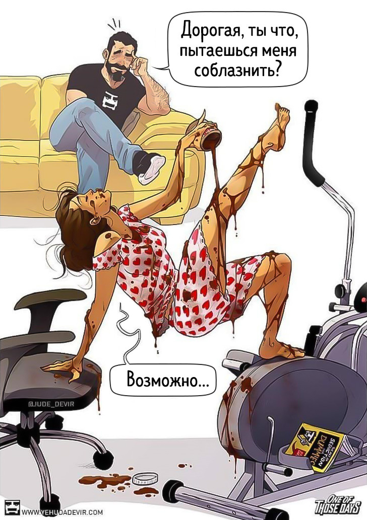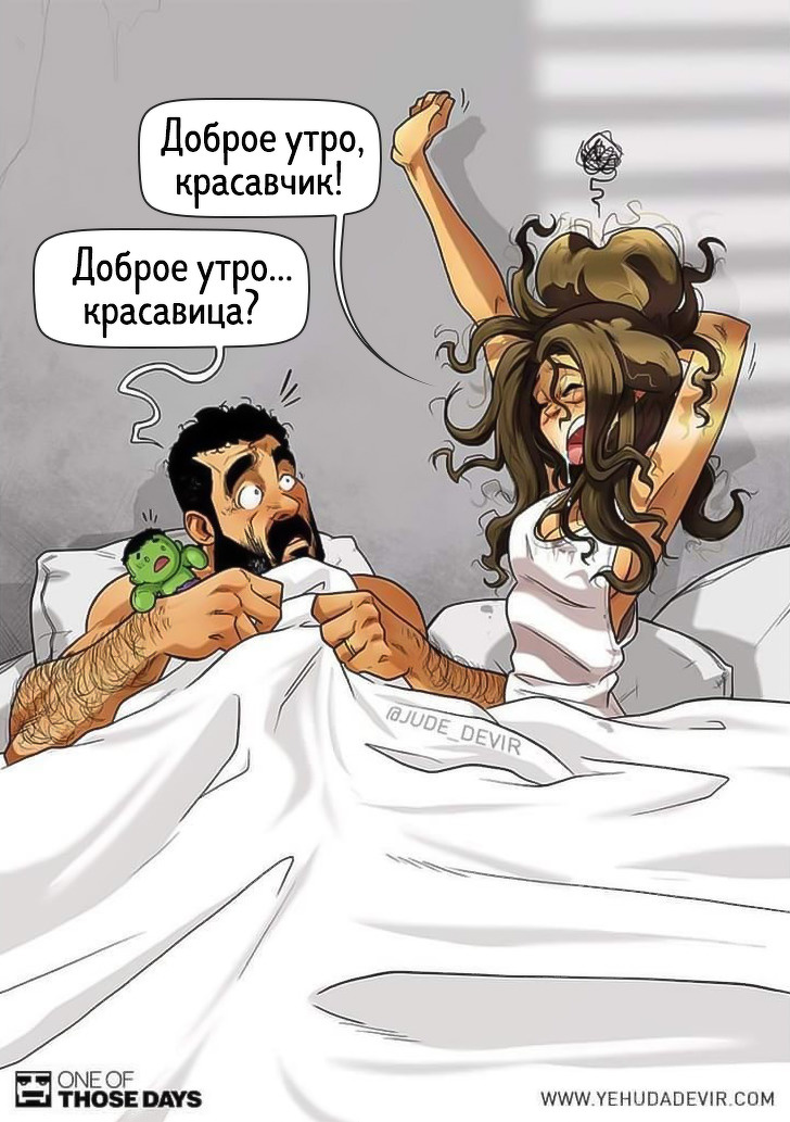 Ієгуда Девир (Yehuda Devir) — автор коміксів про сімейне життя «Один з цих днів», які вже встигли завоювати серця мільйонів його передплатників у инстаграме і на фейсбуці. Роботи ізраїльського художника красномовніше будь-яких слів говорять про його кохання до дружини, красуні Майї, яка теж закохана в творчість і малює картини в стилі реалізм. Солодка парочка разом вже майже 10 років, і за цей час їм вдалося вивести формулу ідеального шлюбу, побудованого на турботі, ніжності та море гумору.