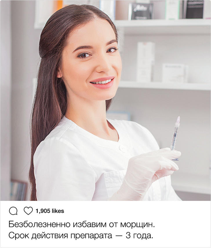 Припустимо, ви прийшли позбутися від зморшок на лобі, а вам рекомендують зробити чистку, курс пілінгів, надати об'єм в потрібних місцях філерами і заодно спробувати всі процедури по існуючих акцій.