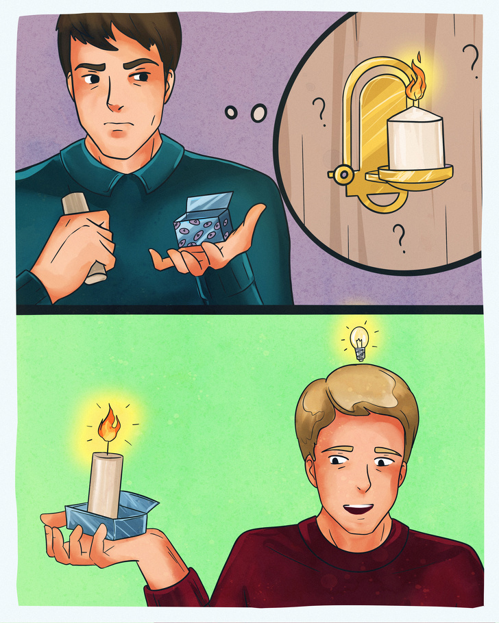 З-за функціональною фіксації ми часом не можемо вирішити якісь проблеми, оскільки зациклюємося на початковому призначення предмета. В результаті людина не в силах зробити «латеральний стрибок» мислення (зазначимо, що латеральне мислення — це вміння мислити нестандартно), тому проблема залишається невирішеною. Адже мало хто з нас здатний розгледіти свічник у коробці для скріпок, особливо якщо вони в ній зараз лежать. А ось у «професійних вижівальників» набагато менше подібного зациклення на стандартних функціях предмета.