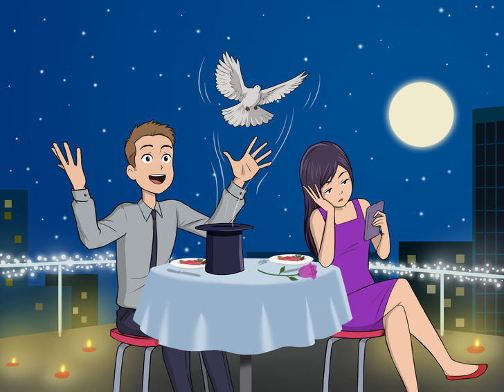 Він захоплено про щось розповідає, поки ви дивіться в одну точку і літаєте десь у хмарах. Це спілкування навряд чи можна назвати діалогом, адже навіть якщо він задає питання, ви не розумієте його і переспрашиваете. В кінці побачення хлопець навіть може звинуватити вас в холодності або вважати нудною.