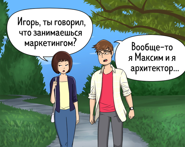 Прийшовши на побачення, ви з жахом виявляєте, що не пам'ятаєте імені свого супутника. Можливо, це відбулося із-за того, що зустрічі поставлені на потік. У вівторок побачення з Мішею, в середу прогулянка з Артемом, а на четвер заплановано вечеря з Віталієм. Не дивно, що в такій метушні ви забули, який сьогодні день.